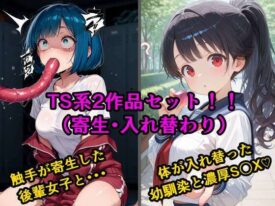 TS系の性癖に特化した2作品セットです!以下2作品フルカラーイラスト全144枚(セリフ有り・なし含む)を収録しています。本作品はAIを使用して作成しています。1.【寄生】生意気な後輩の中に触手が入っていった話生意気な後輩女子が、目の前で触手に寄生されている姿を目の当たりにした男。触手に抗えず翻弄されて後輩女子を犯してしまう。2.【入れ替わり】両片思いの幼なじみと不思議なピンクのキューブ両片思いの幼馴染男女が、ある日謎のキューブによって体が入れ替わってしまう。お互いの想いに気づき更にS〇Xで愛を深めていく・・・※2025年11月3週にpixivで公開した作品のまとめ作品です。限定公開分を合わせた完全版になります。