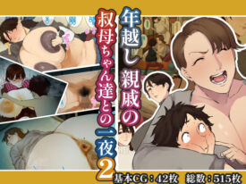 【ストーリー】あれから一年―― 大晦日.主人公・明石純矢は親戚の叔母ちゃんたちとまた会えるのを楽しみにしていた。美人でスタイル抜群、子供の頃から可愛がってくれる3人の叔母ちゃん。乳臭くてふわふわな明日香叔母ちゃん、いい匂いでデカケツな眞穂呂叔母ちゃん。童顔で乳輪がぷっくりしてる瑠璃姉ちゃん。 その距離感は余りにも近く、思春期の純矢には刺激が強すぎた。「3人と恋がしたい」そんな純矢の夢はあらぬ方向へ転んでいく。去年、酔うと何時間も起きない叔母ちゃん達の性質を利用して、純矢は寝ている叔母たちとセックスしてしまった。あの時のことが忘れられず、今年も叔母ちゃん達とセックスをしてしまう。次第に、独りよがりの恋愛に寂しさと不安を感じた純矢は「起きた叔母ちゃんたちとセックスしたい……」という気持ちが募っていく。 しかし同時に、「寝ていてほしい……」という思いも頭から離れない。起きてほしい。寝ていてほしい。そんな矛盾した欲望に揺れる純矢の目の前で叔母さん達は・・・◆ファイル内容基本CG:42枚 総数:515枚