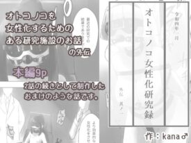 オトコノコ女性化研究録 外伝其ノ一本編9p表紙など含め、全11Pです。※pixivFANBOXなどで有料会員様向けに公開したものと同一の内容になります。内容は「オトコノコ女性化研究録 其ノ二」の続きになります。男性だけになってしまった世界。子孫を残すために女性化の素質を持ったオトコノコが、とある研究施設に連れてこられる。そこではオトコノコを女の子にするための教育、研究、調教が行われていた。